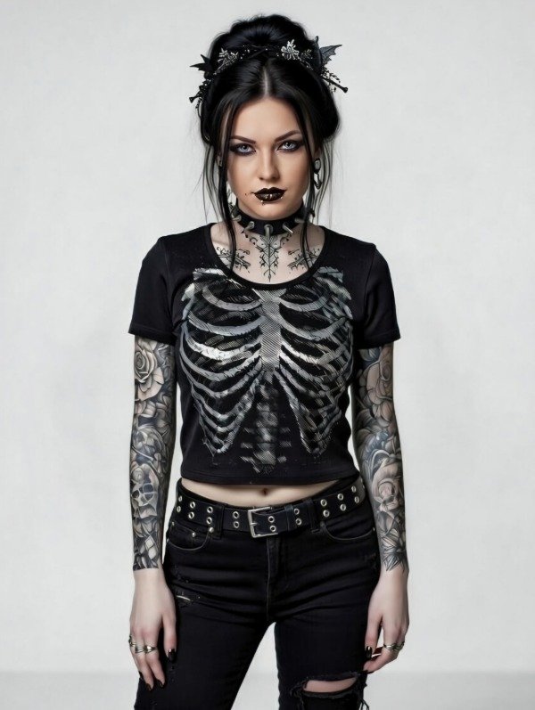 A) Remera Top Negra Viscosa y Poliéster